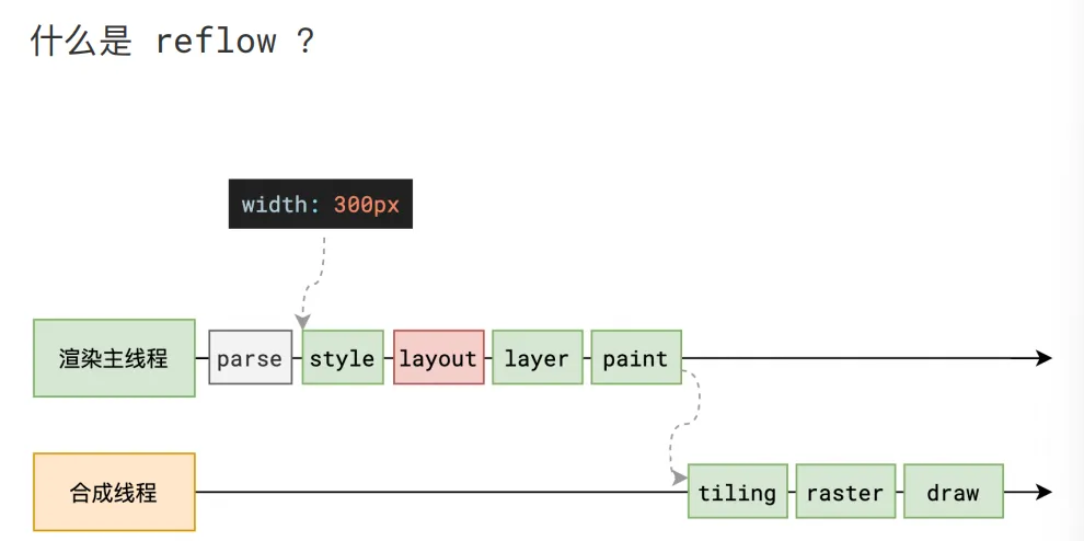为了避免连续的多次操作导致布局树反复计算,浏览器会合并这些操作,当 JS 代码全部完成后再进行统一计算。所以,改动属性造成的 reflow 是异步完成的。