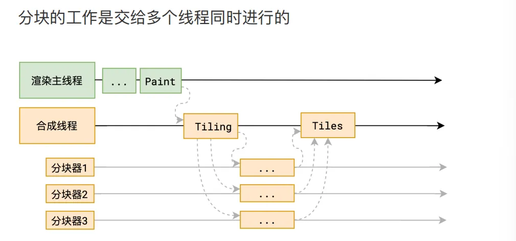 合成线程首先对每个图层进行分块,将其划分为更多的小区域。