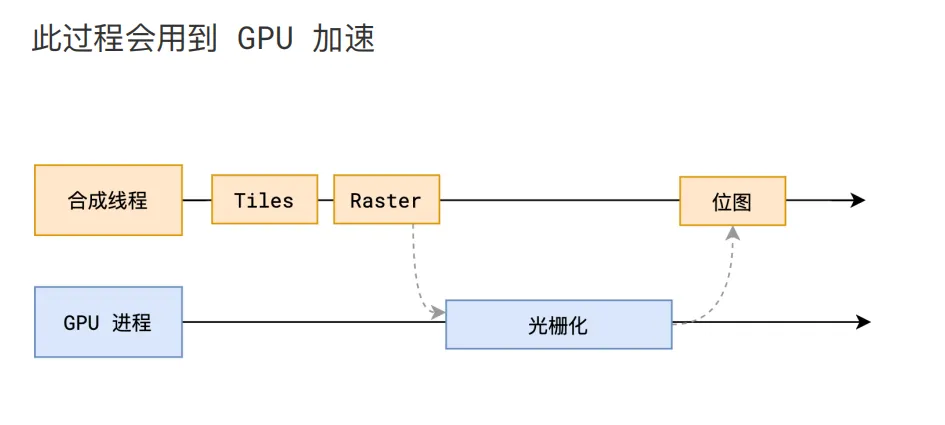 合成线程会将块信息交给 GPU 进程,以极高的速度完成光栅化。