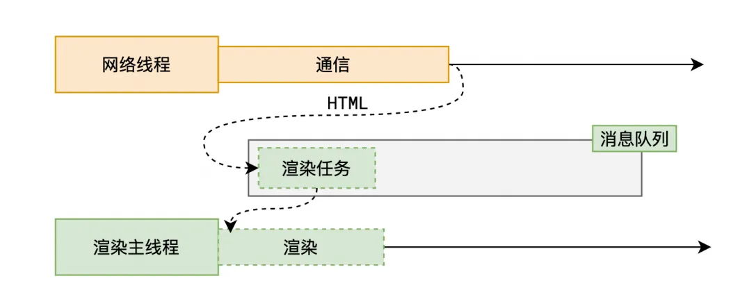 当浏览器的网络线程收到 HTML 文档后,会产生一个渲染任务,并将其传递给渲染主线程的消息队列。在事件循环机制的作用下,渲染主线程取出消息队列中的渲染任务,开启渲染流程。