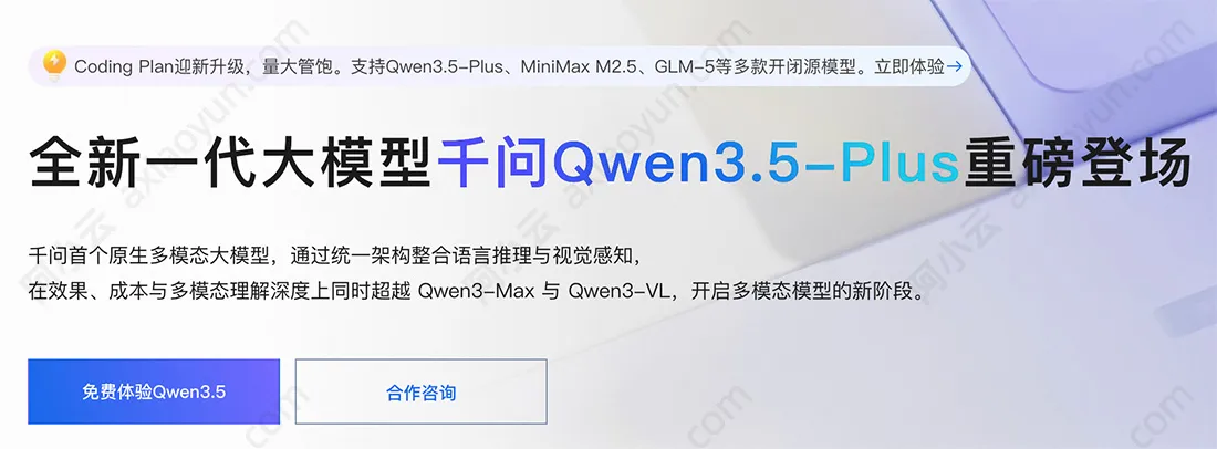 阿里云千问大模型Qwen3.5-Plus版适用于文本生成、深度思考、视觉理解,阿小云整理Tokens价格,包括不同输入大小128k、256k及1m费用价格,以及显式缓存创建和命中费用: