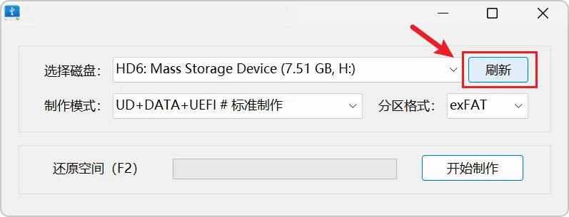 U盘链接电脑的时候,如果没有出现内容,点击刷新再去试试