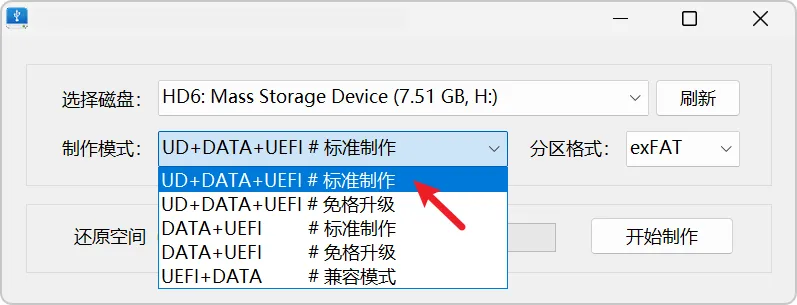 然后在制作模式这里,选择:标准制作。其它制作也可以,按你自己的情况来。