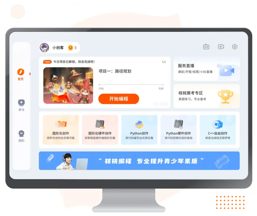 核桃编程是青少年编程教育行业的领先企业。自 2017 年 8 月成立以来,核桃编程通过打造智能实操产品与服务矩阵,发展成为了包含编程系列产品、编程硬件、赛级展服务、素质延展产品及数字出版物的多元化公司。在落实科学教育加法的实践之路上,核桃编程致力于提高青少年的科学素养,激发他们对学习的热爱,并以此培养未来科技创新人才。
