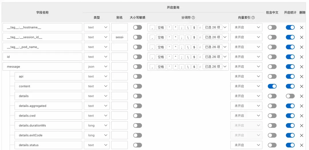 Session 日志为 JSON 嵌套格式(如 message.contentmessage.usage.costmessage.toolName),SLS 提供 SQL + SPL 计算引擎及丰富的解析、过滤、聚合算子,可对嵌套字段做索引与实时分析,无需额外 ETL 处理。