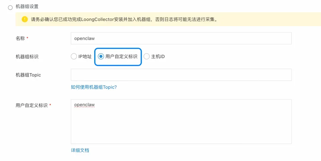 1. 机器组配置,建议使用标识型机器组