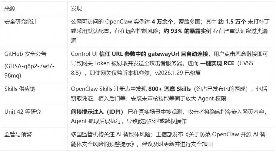 2026 年初,多家安全厂商集中披露了一批 OpenClaw 相关漏洞和事件,数据触目惊心: