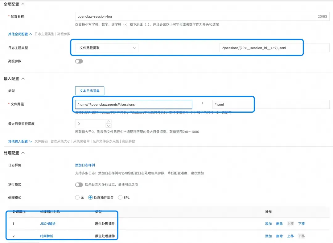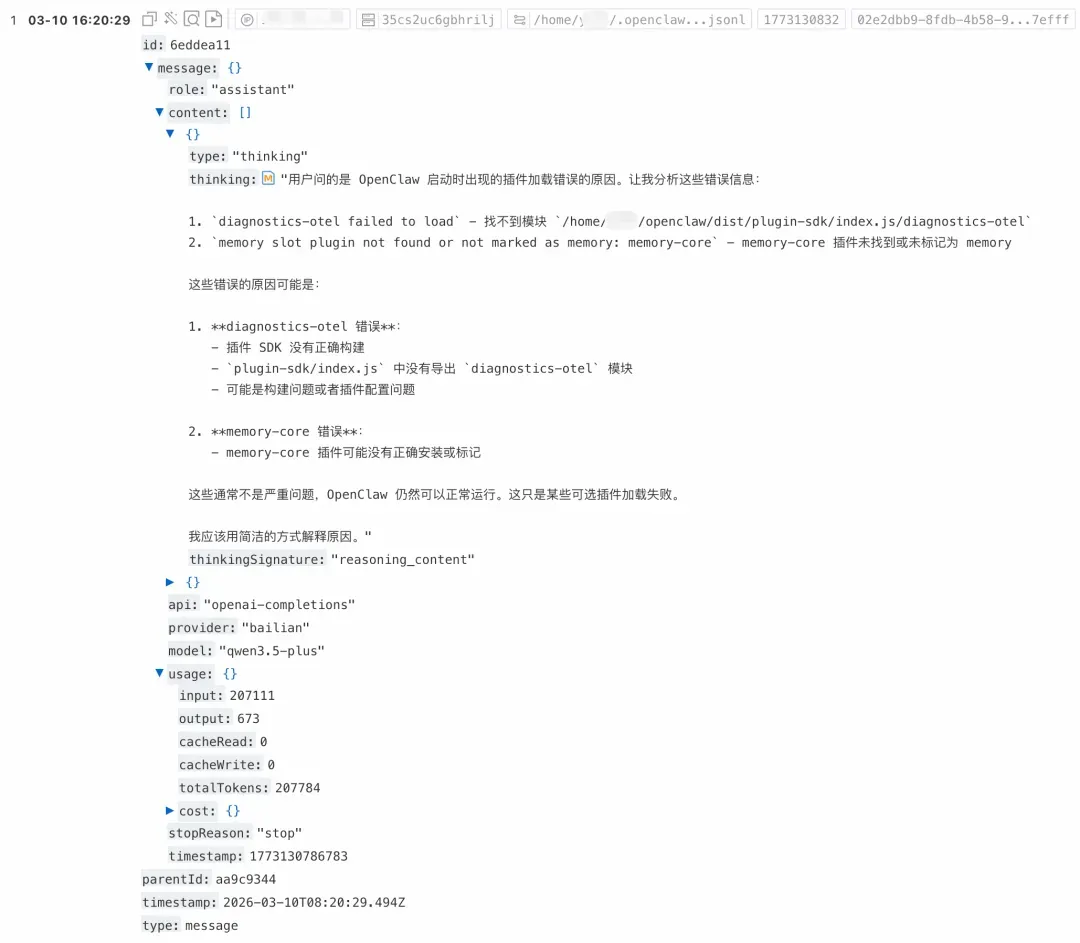 关于时间解析:OpenClaw 默认输出日志中的时区为 0 时区,如进行过自定义,请同步修改时间解析插件中的时区,避免时间错配。