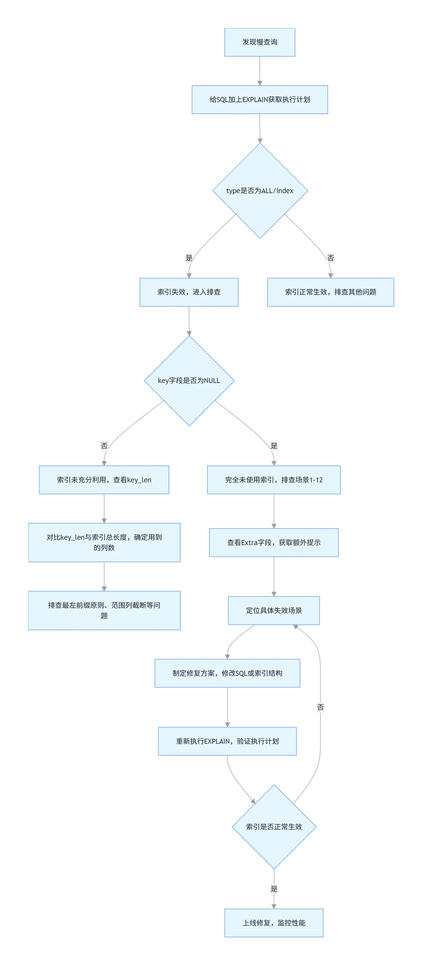 二、EXPLAIN执行计划:索引失效定位的核心工具