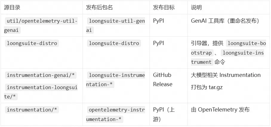 LoongSuite Python 探针是 OpenTelemetry Python Contrib 的 Fork,在保持与上游兼容的前提下,扩展了对 GenAI 框架的可观测性支持,并更敏捷地响应国内生态需求。