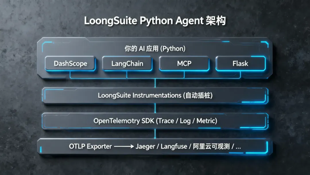 LoongSuite Python 探针是 OpenTelemetry Python 探针的阿里云开源发行版,致力于让 AI 应用的可观测性更敏捷、更高效——既承接上游标准,又沉淀商业化实践,并持续将新特性贡献回社区。
