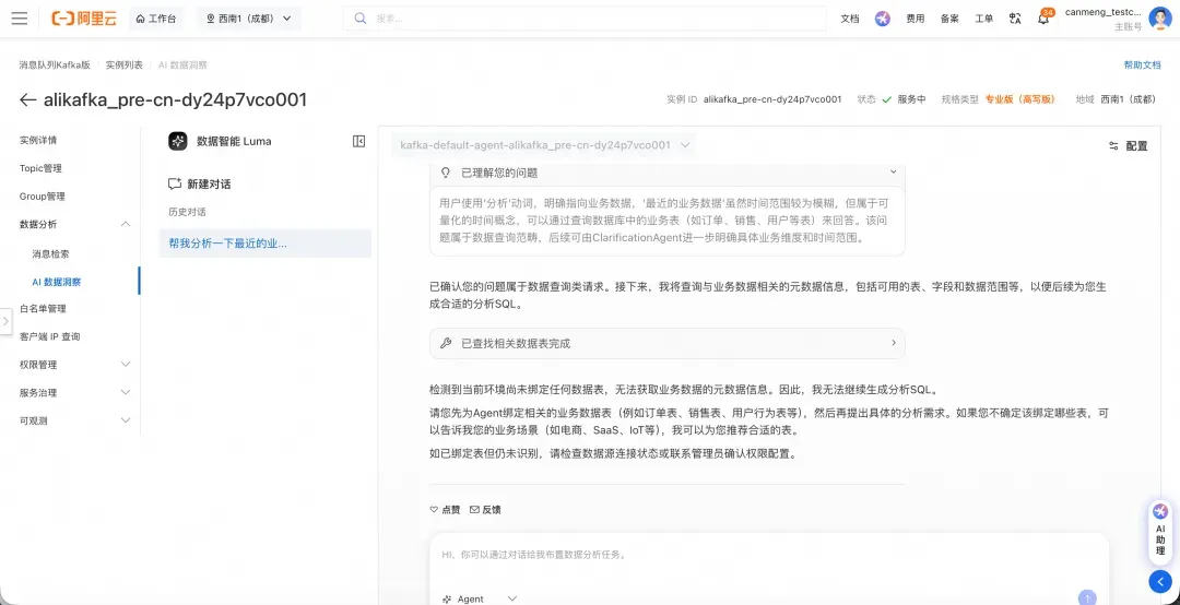 同时,阿里云 RocketMQ、Kafka 等消息产品也提供了 EventHouse 一键分析入口,企业可直接从消息流视角开展实时洞察,从“消息传输”进一步走向“消息分析”。