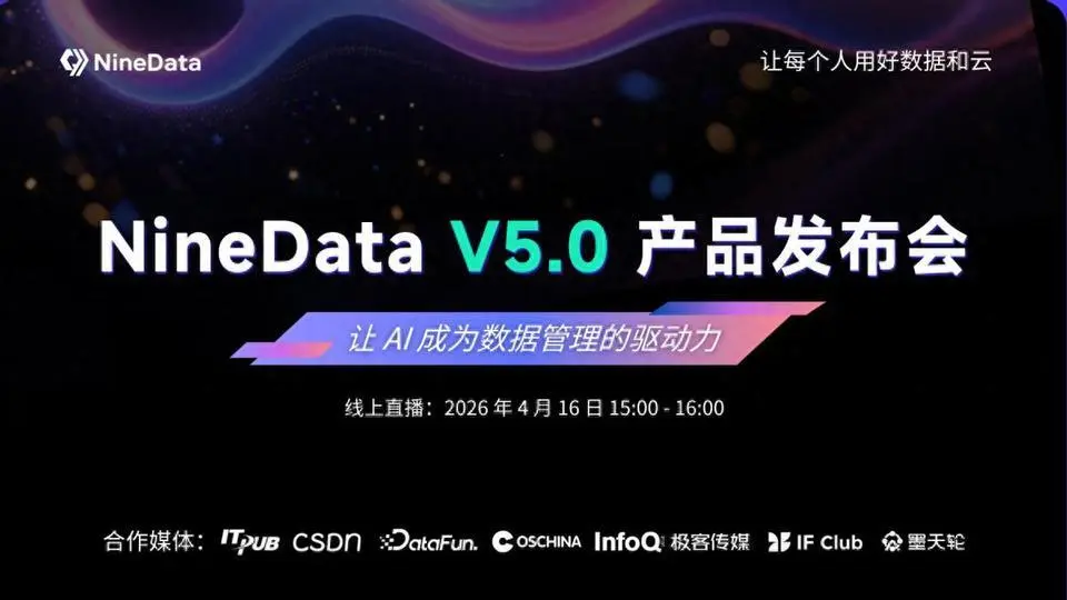 4 月 16 日,NineData V5.0 产品发布会即将重磅启幕!本次发布围绕数据复制、数据库 DevOps、智能运维、AI Agent 等功能全面升级,通过原生 AI Agent 技术重构数据库管理和运维体系,打造更智能、更稳定、更高效的一站式数据管理平台。