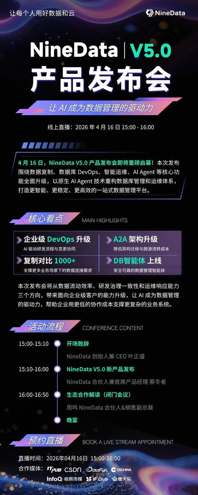 NineData V5.0 产品发布会:让 AI 成为数据管理的驱动力,4 月 16 日!