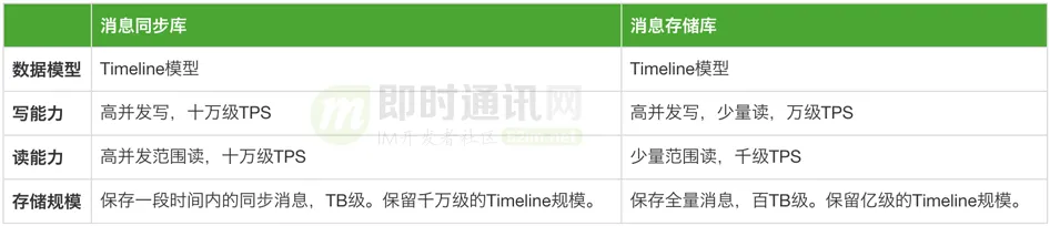 消息同步库和消息存储库,对数据库有不同的要求,如何对数据库做选型,在下面会讨论。