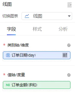 订单日期字段 - 值轴/度量(Y轴):拖入