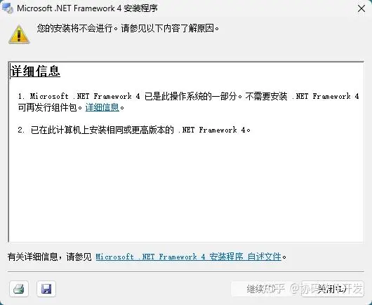 需要注意的是,.NET Framework 4.0已经结束了主流支持,微软只提供有限的安全更新。如果可能,建议软件开发者将程序升级到支持更新.NET版本。