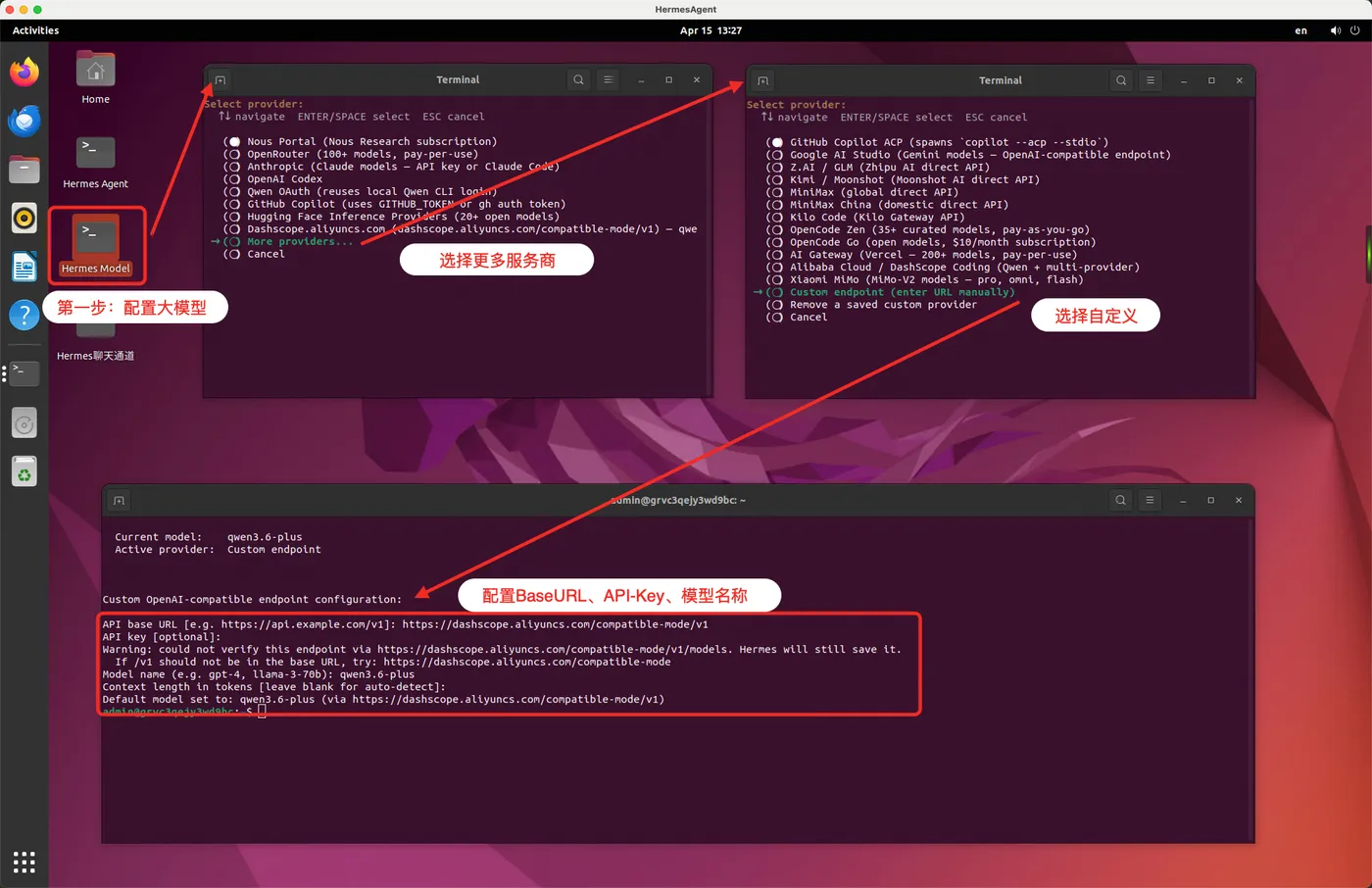 通过以下步骤,为Hermes Agent配置大模型。