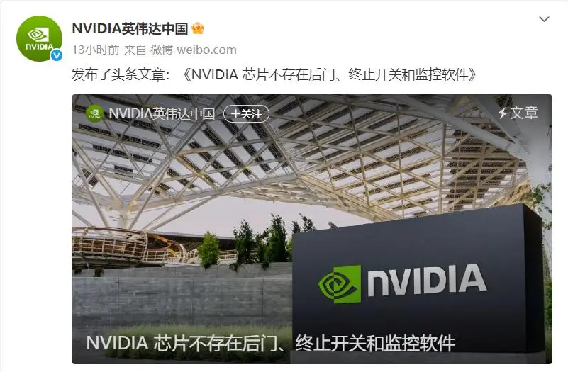 昨晚,英伟达发布了一篇长文声明,核心内容简洁明了:我们的芯片不存在后门、终止开关和监控软件。