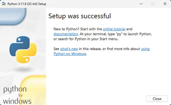 4. 等待安装完成,最后点击 Close: