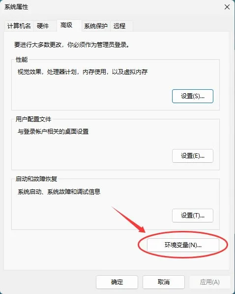 3)在系统属性窗口中,点击"环境变量"按钮: