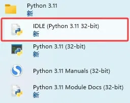 在开始菜单里找到 Python IDLE,打开它: