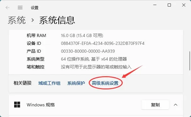 2)然后点击"高级系统设置":