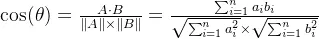 余弦相似度是余弦重排序的核心,用于衡量两个向量之间的 “方向相似度”,值越大表示越相似(范围:[-1,1])。假设存在两个向量 A=(a1, a2,..., an)和B=(b1 ,b2 ,...,bn),余弦相似度计算公式为: