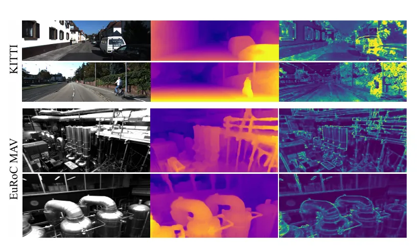 - 输出:语义一致深度图、融合权重(深度置信度)更新、几何异常区域标记。
