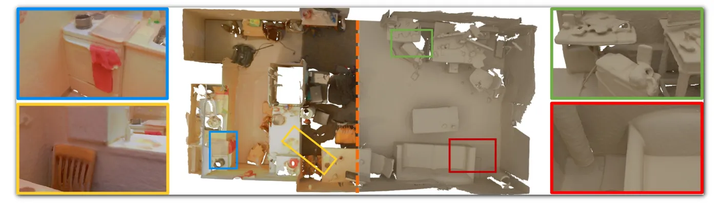 - 大场景重建:强调全局一致性与效率,需分区建图、层级表示和内存优化。