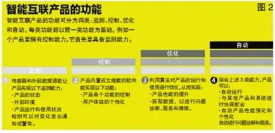 迈克尔·波特在《物联网时代企业竞争战略》中提出,智能互联产品的功能分为监测、控制、优化和自动四个层级,每个功能都以前一类功能为基础。(见图2)