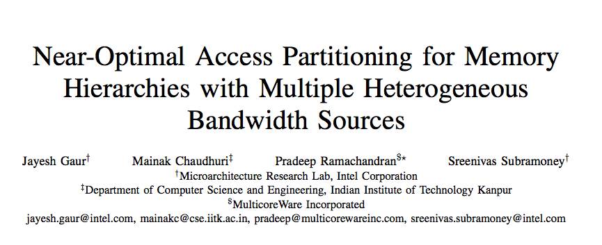 2月8日,新智元从谢源教授处得到消息, HPCA 2017 本年度的最佳论文已经公布。来自英特尔的论文《Near-Optimal Access Patitioning for Memory Hierarchies with Multiple Heterogeous Bandwidth Sources》摘下桂冠。