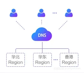 跨地域容灾是个非常大的课题,不仅仅涉及到网络层面,更涉及到应用系统的改造和适配,数据的同步和一致性等很棘手的问题。这里仅说明下网络层面的跨地域容灾。从产品角度看,跨可用区容灾一般是通过DNS来实现的,如下图所示