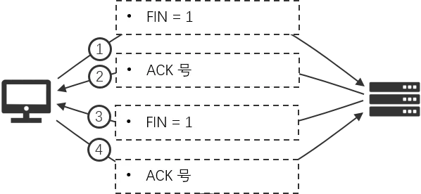 - 服务器收到断开连接信息时,可能还有数据没有传完,所以等待数据全部传输结束后,再发送一条 FIN 为 1 的信息,告诉对方也做了断开连接的准备,但没有断开;