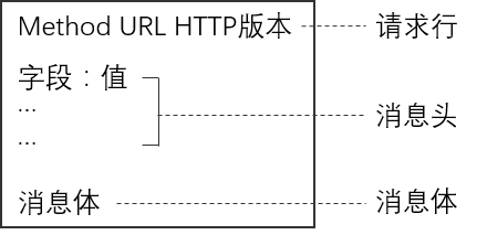 解析完要访问的目标服务器是啥了,接下来浏览器就会用 HTTP 协议生成请求消息去 web服务器请求资源,消息格式如下: