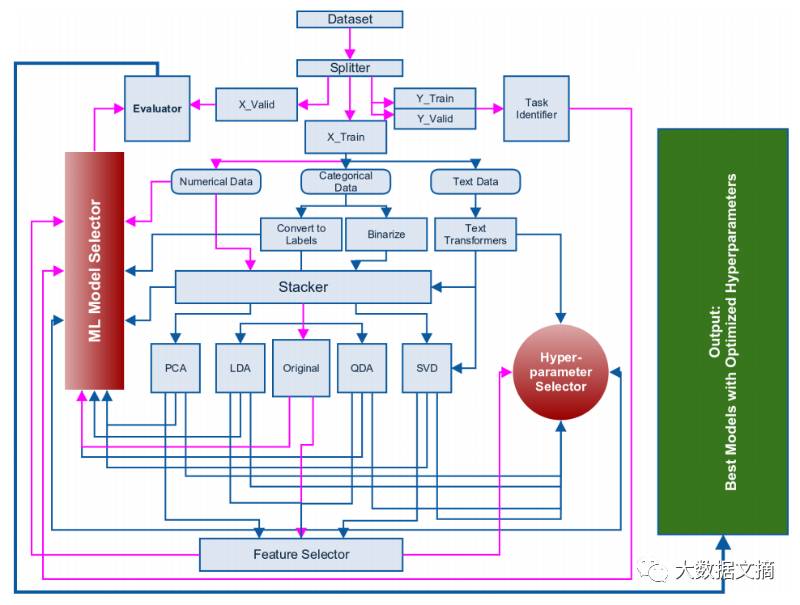 2015起,我开始制作一个自动机器学习框架,还在完善过程中,很快就会发布。下图所示的框架图就是这篇文章中将会提到的基础框架: