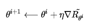 在优化过程中,对话模型的权重 \theta 更新如下, \nabla \tilde{R_{\theta}} 为所获奖励的变化梯度,