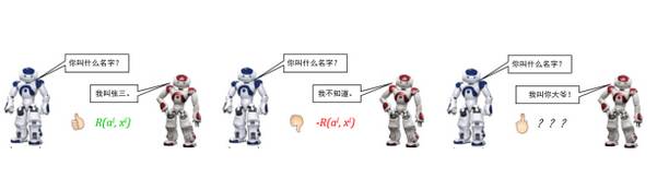 自AlphaGo使得强化学习猛然进入大众视野以来,大部分对于强化学习的理论研究都将游戏作为主要实验平台,这一点不无道理,强化学习理论上的推导看似逻辑通顺,但其最大的弱点在于,基于人工评判的奖励 Reward 的获得,让实验人员守在电脑前对模型吐出来的结果不停地打分看来是不现实的,游戏系统恰恰能会给出正确客观的打分(输/赢 或 游戏Score)。基于RL的对话生成同样会面对这个问题,研究人员采用了类似AlphaGo的实现方式(AI棋手对弈)——同时运行两个机器人,让它们自己互相对话,同时,使用预训练(pre-trained)好的“打分器”给出每组对话的奖励得分 R(a^i, x^i) ,关于这个预训练的“打分器” R ,可以根据实际的应用和需求自己DIY。 R(a^i, x^i) = \lambda_1 R(是否通顺) + \lambda_2 R(是否辞不达意) + \dots + \lambda_n R(是否总说重复的废话)
