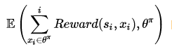 RL通常是一个马尔科夫决策过程,在各个状态 s_i 下执行某个动作 x_i 都将获得奖励(或者是"负奖励"——惩罚) Reward(s_i, x_i) ,而将从头到尾所有的动作连在一起就称为一个“策略”或“策略路径” \theta^\pi ,强化学习的目标就是找出能够获得最多奖励的最优策略: