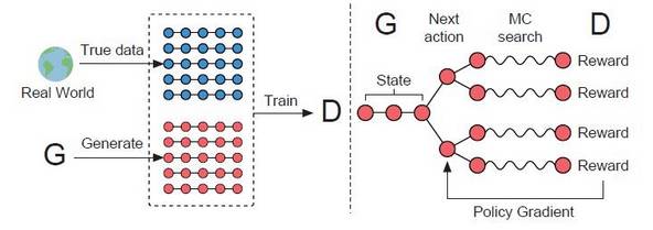 SeqGAN也存在这样的问题,一开始的生成器G非常弱,即便是经过一定量的预训练,也几乎生成不出好的Result,然后这些bad result给到鉴别器D必然只能返回很低的 Reward (惩罚),生成器G的训练只能根据鉴别器的打分来优化而无法得到good example的指导,永远不知道什么是好的结果,结果必然是恶性循环。于是,有必要在SeqGAN训练中给到生成器G真实样本的指导,也就是告诉生成器:“什么样的样本才配得到高分 Reward ?”