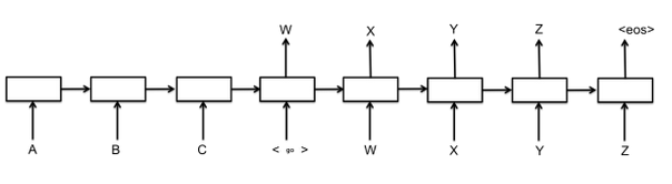 与句子生成任务类似,对话生成以每组Dialogue作为 “样本-标签” 对,循环神经网络RNN_1对Dialogue上文进行编码,再用另一个循环神经网络RNN_2对其进行逐词解码,并以上一个解码神经元的输出作为下一个解码神经元的输入,生成Dialogue下文,