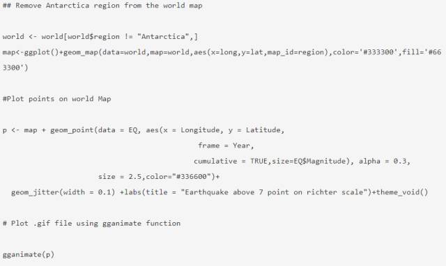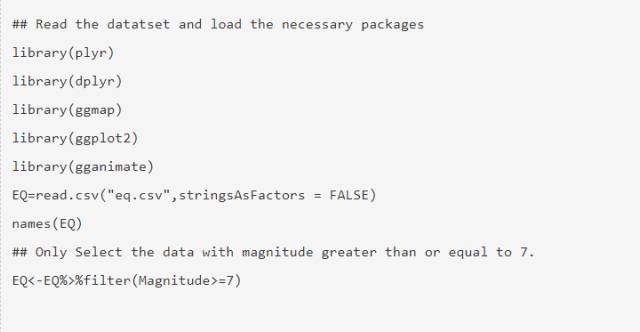 这篇文章试图用1965到2016年的地震数据来制作动图文件。最好是在地图上按年份顺序绘制全球地表活动而非静态呈现所有的数值。地震的数据集在Kaggle上是开放的(https://www.kaggle.com/usgs/earthquake-database)。数据集包括1965年至2016年地球地震活动的数据。请访问以上链接并且向下滚动以得到csv的文件夹。