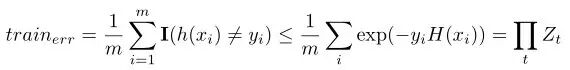 也就是说,Adaboost最终模型的训练误差上界可以