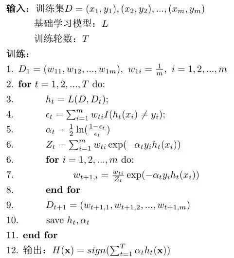为了可以更加专业一点描述Adaboost算法,下面将2.1的步骤以伪代码的形式展现出来,便于后面的实现。