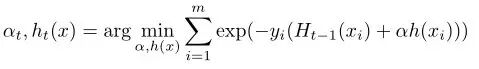 根据H(x)的定义,通过优化上式,我们可以得到第t轮迭代时最优的α和h(x):
