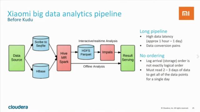 在使用Kudu以前,小米的数据处理流程是这样的: