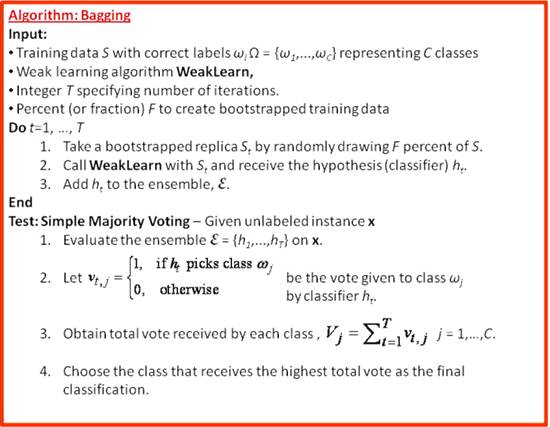 Bagging通过对原数据集进行有放回的采样构建出大小和原数据集D一样的新数据集D1,D2,D3.....,然后用这些新的数据集训练多个分类器g1,g2,g3....。因为是有放回的采样,所以一些样本可能会出现多次,而有些样本会被忽略,理论上新的样本会包含67%的原训练数据。