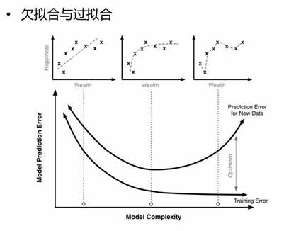 欠拟合和过拟合是经常出现的两种情况,简单的判定方法是比较训练误差和测试误差的关系,当欠拟合时,可以设计更多特征来提升模型训练精度,当过拟合时,可以优化特征量降低模型复杂度来提升模型测试精度。