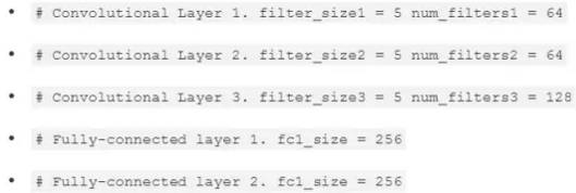 然后我们在网络末端构建了2个完全连接的层。输入是形状为[num_images,num_inputs]的2维张量。输出是形状为[num_images,num_outputs]的2维张量。