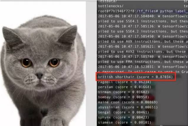 首先,我们需要获得预先训练的模型,删除旧的顶层,并在我们拥有的数据集上训练一个新的模型。在一个没有猫品种的原始ImageNet类中,要对完整的网络进行训练。迁移学习的神奇之处在于,经过训练以区分某些对象的较低层可以重用于许多识别任务,而无需任何更改。然后我们分析磁盘上的所有图像,并计算其中每个图像的瓶颈值(bottleneck values)。点击这里查看bottleneck的详细信息(https://www.tensorflow.org/tutorials/image_retraining)。每个图像在训练过程中被重复使用多次,所以计算每个瓶颈值都需要花费大量的时间,因此可以加快缓存这些瓶颈值,从而不必重复计算。